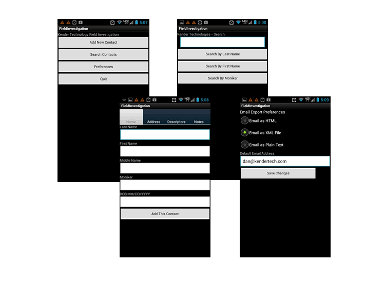 - Document contacts with suspicious persons including name, date, location, descriptors, and an image of the person (when equipped with a camera) on Android devices